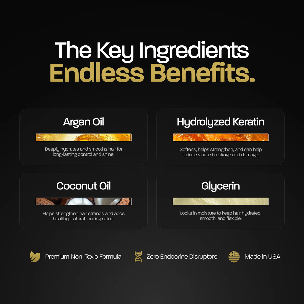 Your hair will feel softer, smoother, more manageable, and less frizzy after every use. It’s real hydration—not temporary slickness from cheap fillers.