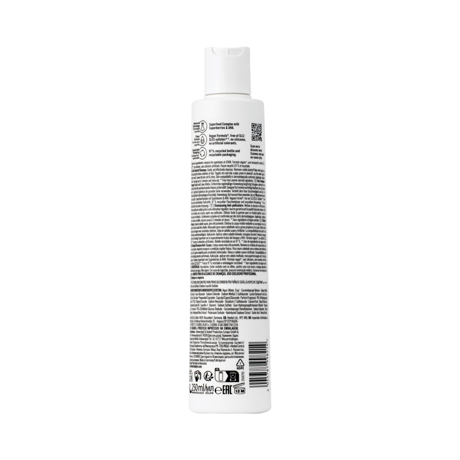Schwarzkopf Professional BC Bonacure Anti Dandruff Shampoo is a gentle cleansing shampoo that removes visible dandruff flakes from the scalp, protects it from irritation and prevents new visible flakes from forming – thanks to its powerful anti-fungal ingredients. It is dermatologically tested for a scalp that suffers from dandruff. The formula is pH-balanced, vegan and contains Superfood Complex with Superberries and AHA, which restores the scalp’s health and nourishes the hair. You can use it daily.