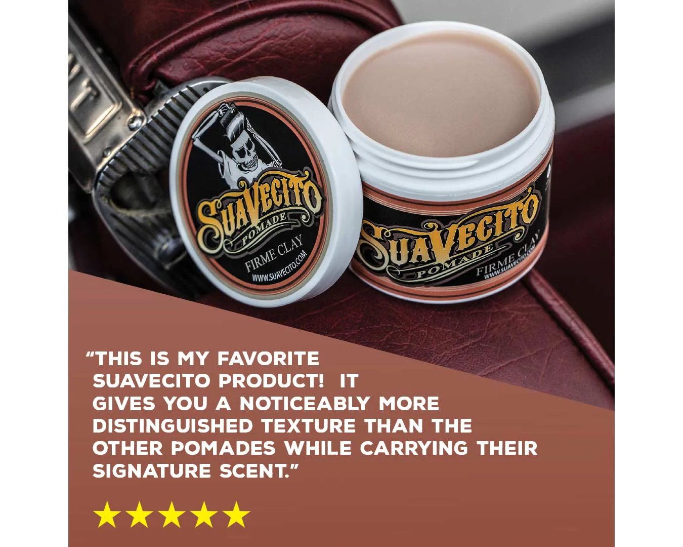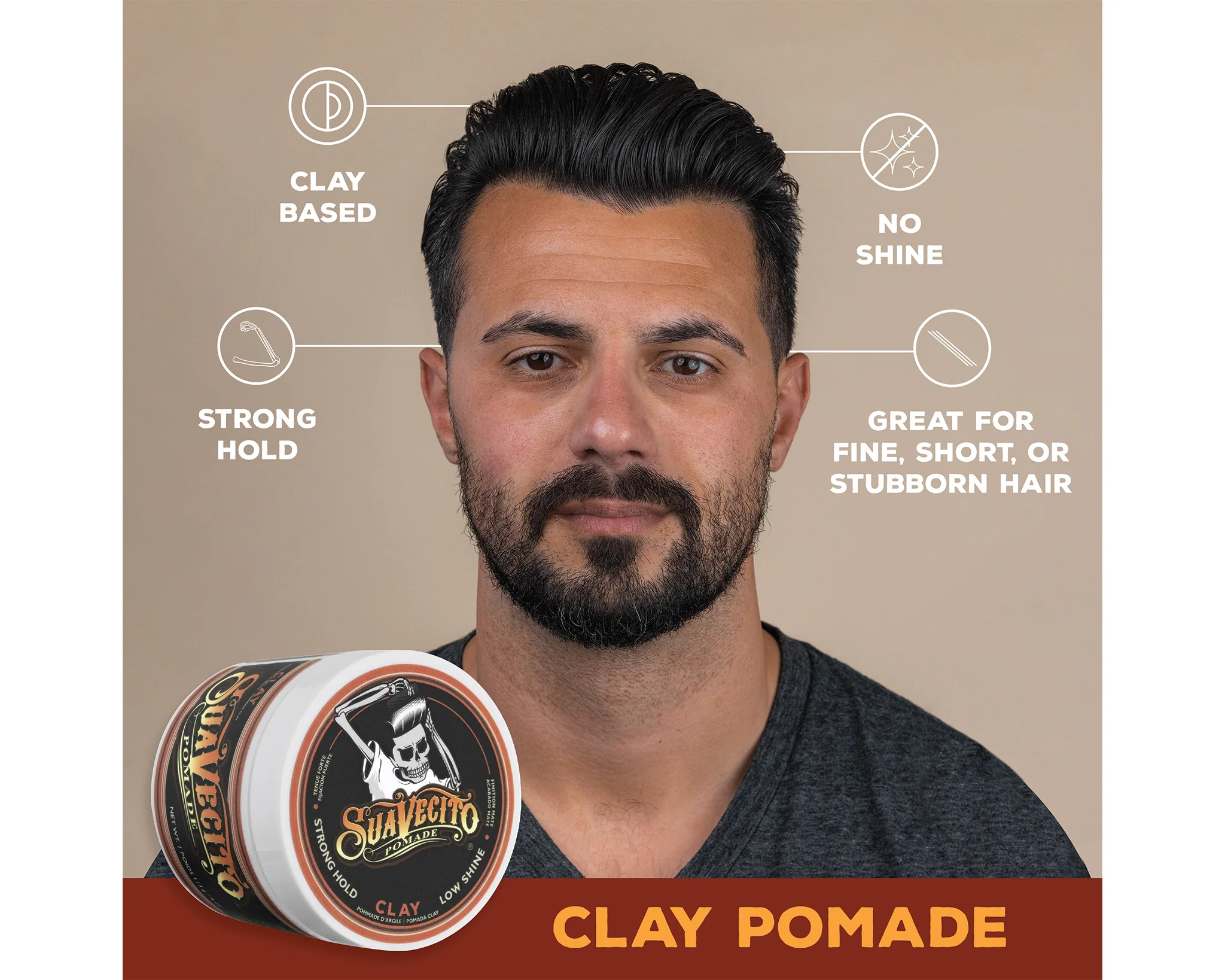 Suavecito Firme Clay Pomade works for all hair types and textures, but it is especially great for fine hair that struggles to hold a style, or short to medium hair that needs a little extra grip.